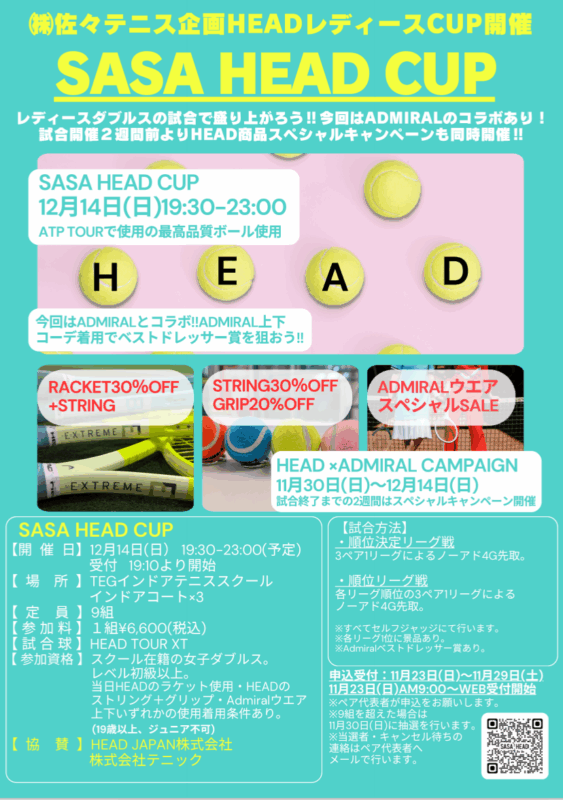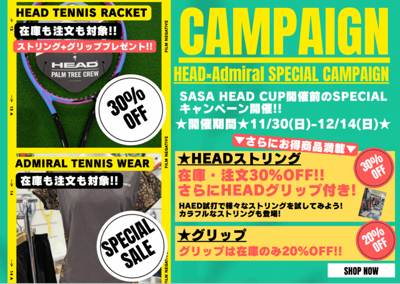 HEAD商品やADMIRAL商品がお得に購入出来ます‼️是非この機会にHEAD商品やADMIRALウエアを購入してイベントを楽しみながら一緒に盛り上がりましょう♪