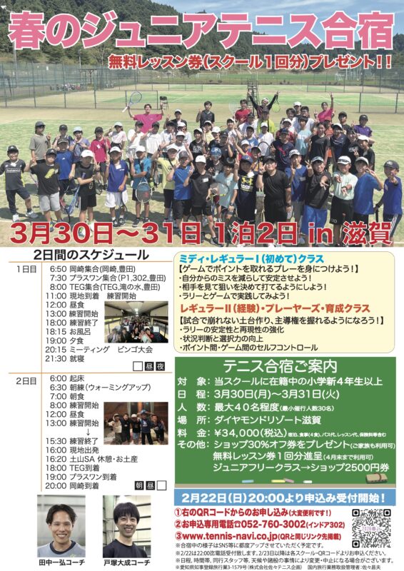 〈対象〉当スクールに在籍中の小学新4年生以上のジュニア